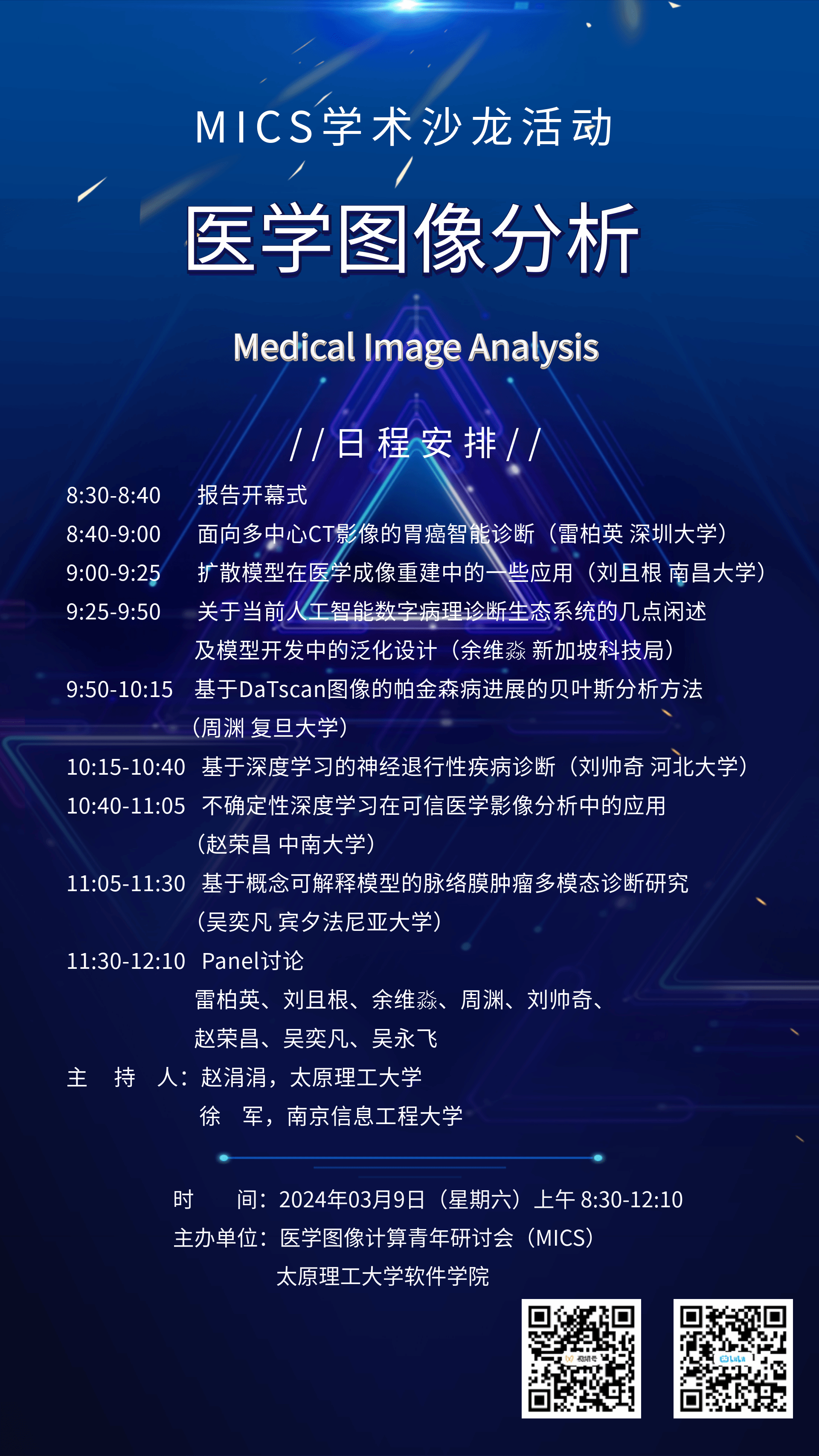3月9日,MICS学术沙龙活动——“医学图像分析”顺利在线上举办。本次活动由永利yl23411集团主办,学院院长赵涓涓主持,邀请深圳大学雷柏英教授、南昌大学刘且跟教授、新加坡科技局余维淼教授、复旦大学周渊老师、河北大学刘帅奇教授、中南大学赵荣昌教授、以及宾夕法尼亚大学吴奕凡博士作专题报告。