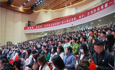 舞台上,诵读者精神饱满,用最动听的声音、最真挚的情感把一段段优美的文字化为一幅幅生动的画面。同学们亦是沉浸其中,以最饱满的情绪一同诵读《青春中国》以及习近平总书记对青年的寄语,感悟文字的力量。同学们纷纷表示上了一堂生动的思政课,在今后的学习工作中一定牢记习近平总书记的殷切嘱托,要立大志、明大德、成大才、担大任,努力成为堪当民族复兴重任的时代新人,让青春在为祖国、为民族、为人民、为人类的不懈奋斗中绽放绚丽之花。
