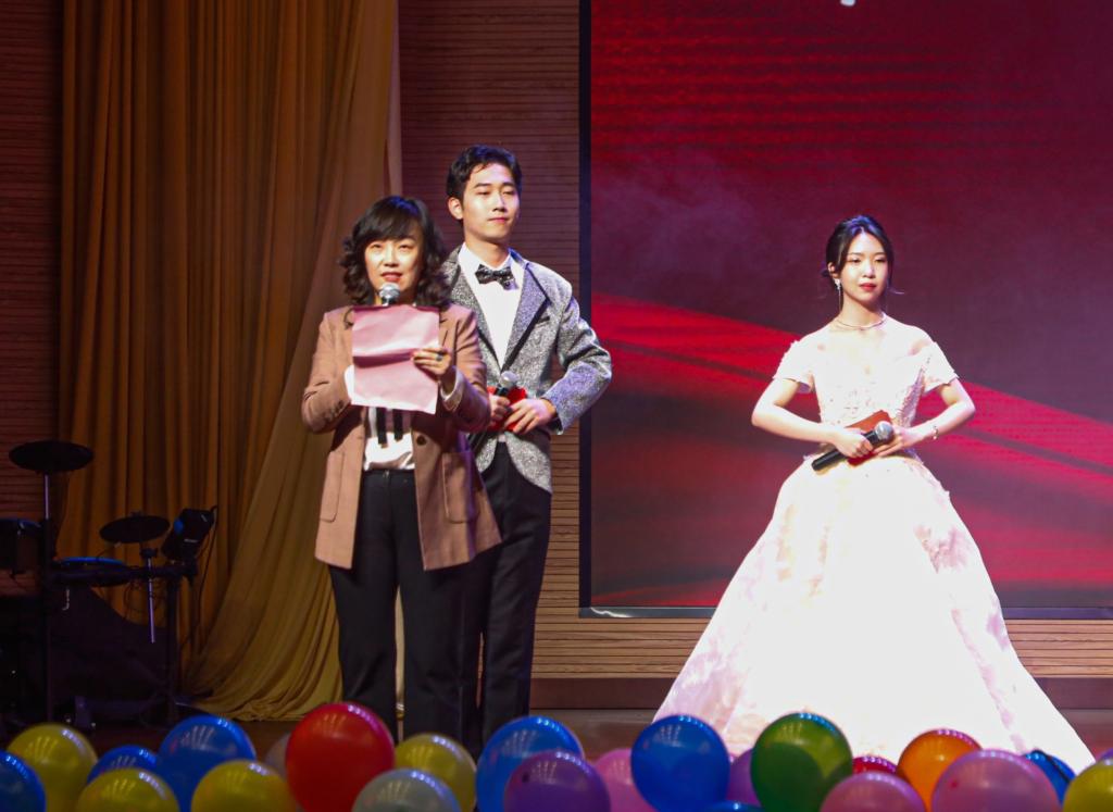 奋斗的青春,闪光的梦想。伴随着如期而至的五四青年节,永利yl23411集团“踔厉奋发二十大,五四青春耀芳华”五四晚会暨颁奖典礼于5月8日晚在学生活动中心举行,在场师生欢聚一堂,共度青春盛会。校学生处副处长李和凤,校团委副书记田韶华,永利yl23411集团院长赵涓涓,党委副书记郭飞,副院长冯秀芳、曹锐,党政办主任赵杰,实训部主任王星魁出席,学院师生参加。