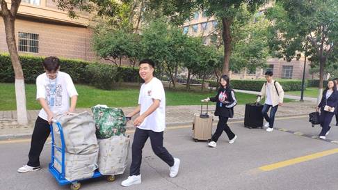 在迎新现场,红旗志愿者中心的学长学姐们用心服务、拥以热情。他们仔细聆听学院家长和新生的困惑,耐心认真地解答;他们帮助迎新志愿者搬取大大小小的行李,不辞辛劳;他们协助迎新志愿者在报道点进行登记,并顺利送达至各个宿舍楼办理各项手续;他们开启了新生大学的新旅途,为他们指引方向,为他们打开大门。他们用自己的热情,感染了每一位新生和家长。