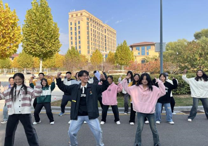 首先是有趣的热身环节。在各部长的带领下,每个部门都以独树一帜的口号和整齐划一的动作展现了部门的风采。凉爽的微风掺杂着阵阵欢笑声,与和煦的日光相互映衬,秋意正浓、时光正好。