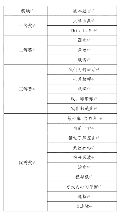 本次心理情景剧剧本大赛吸引了广大学生的积极参与,通过剧本创作这一新活动,不仅加强了同学们对心理健康的认知和运用,更是充分激发了我院学生的创新创作热情,营造了一种积极向上的校园文化氛围。本次活动经过征集、初审、复审三个阶段,最终评选出二十个优秀剧本。