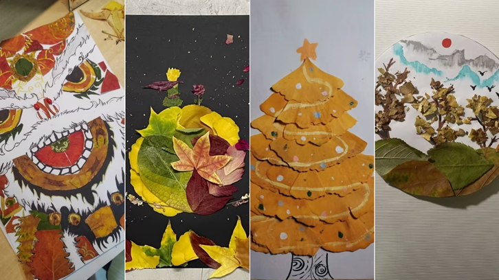 “落笔成画,创意闪亮如繁星。”秋,藏在一幅幅树叶画中。参赛选手以落叶为媒介,表达了对秋天的喜爱与留恋。清秋有梦,叶落成画,一张张树叶画,丰盈了整个秋的诗情画意。落叶是秋风送给大地的信笺,也是我们对秋天的寄托。树叶画作为一种独特的艺术形式,将自然与人文巧妙地结合在一起,让同学们感受到了秋天独有的魅力,进而提高了同学们的创作能力,展现了学子们独特的创作灵感。