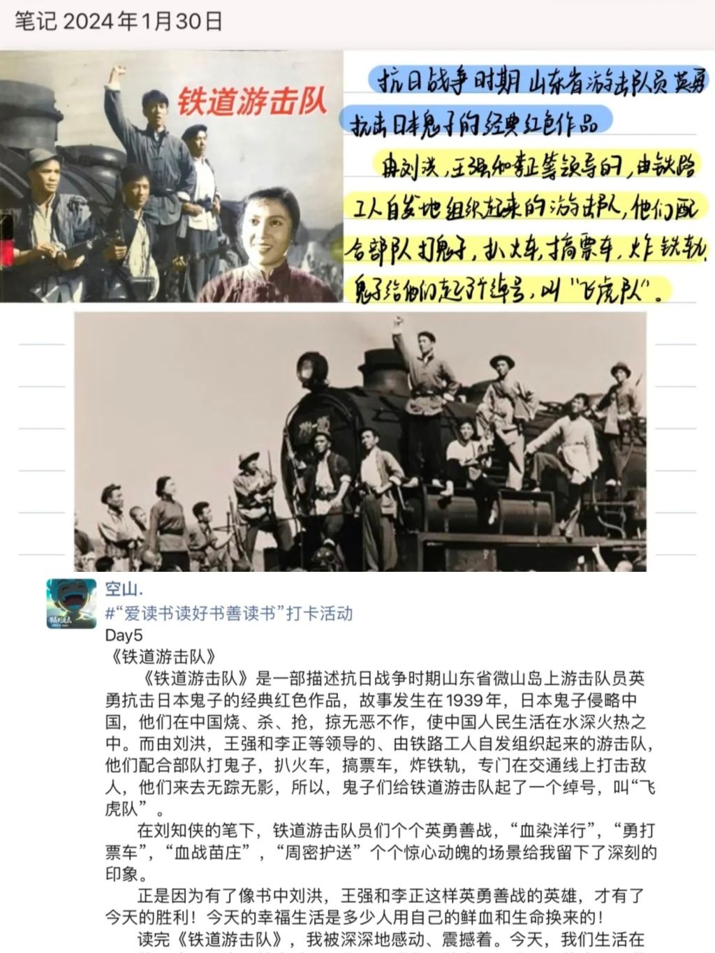 《铁道游击队》是一部描述抗日战争时期山东省微山岛上游击队员英勇抗击日本鬼子的经典红色作品,故事发生在1939年,日本鬼子侵略中国,他们在中国烧、杀、抢、掠,无恶不作,使中国人民生活在水深火热之中。而由刘洪、王强和李正等领导的由铁路工人自发组织起来的游击队,他们配合部队打鬼子,扒火车、搞票车、炸铁轨,专门在交通线上打击敌人,他们来去无踪无影,所以,鬼子们给铁道游击队起了一个绰号,叫“飞虎队”。