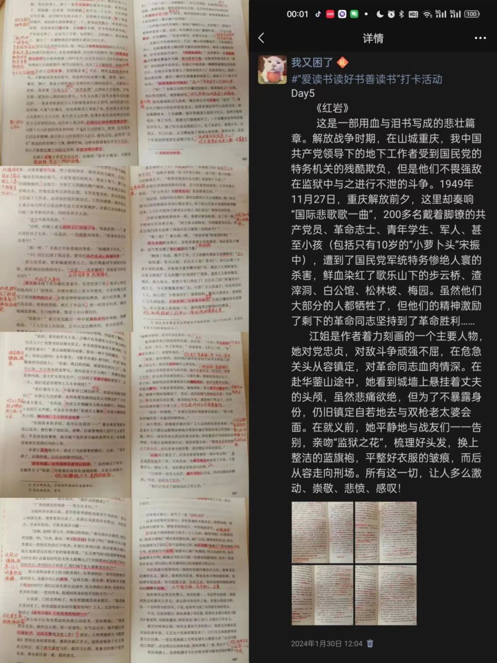 阅读时,我常常按耐不住自己的激情,无数次热泪盈眶,在故事的结尾,看到这些英雄越狱成功,终于见到光明时,内心不禁感叹:革命的道路是多么艰辛不易啊!与此同时,我的内心久久不能平静。走在革命烈士用鲜血熔铸的道路上,面对人生路上的种种挑战,我有什么理由懦弱与退缩!
