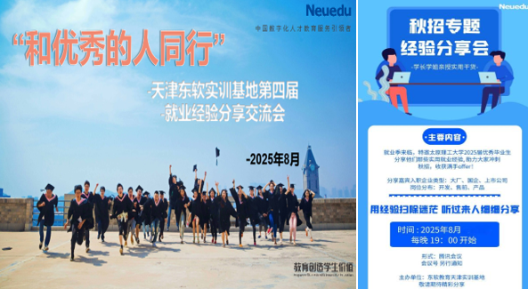 为精准赋能学子职业生涯规划,着力提升学生专业技术实践能力与职业劳动素养,永利yl23411集团在天津东软实训基地举行职业夏令营活动,活动特邀2025届五位入职滴滴、深信服等知名企业的优秀毕业生进行线上经验分享,2026届240余名实训学生全程参与。