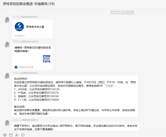 除覆盖多家知名企业的宣讲活动外,还重点聚焦企业专项招聘需求,积极对接北京思特奇信息技术股份有限公司,为学子争取到专场校园招聘机会。此次专场招聘面向大数据方向毕业生,提供JAVA开发、产品经理、前端开发、C++开发等多个核心技术岗位,岗位需求与学院人才培养方向高度契合。招聘过程中,学院统筹协调,从企业宣讲、笔试组织到面试安排,为学生提供“一站式”服务。目前,已有部分学生凭借扎实的专业能力顺利通过考核,拿到企业录用通知。 截至目前,2026届软件工程专业(大数据方向)毕业生就业成果初显:不少学生成功获得多家企业的笔试、面试邀约,部分同学已陆续收到录用意向,为后续职业发展奠定坚实基础。