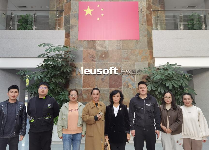 随后,东软教育科技集团高教事业部副总经理兼华北区总经理赵龙等相关负责人带领我院师生继续参观了东软软件园、东软医疗沈阳展示中心、东软医疗医学影像实训中心、东软智能医疗科技研究院展厅等众多场所,介绍了东软集团在智慧医疗产业和教育领域的丰富积累。双方就多项产品和服务,包括“东软飞标医学影像标注平台”、“多模态医学人工智能平台”、“东软实践教学案例库”、“东软云实训平台”以及“东软云实践平台”等展开了热烈的交流与探讨。
