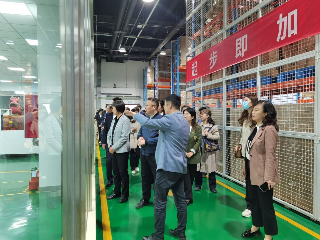 赵涓涓一行首先参观企业,详细了解百信的发展历程、组织构架、业务布局、研发能力及技术力量,对相关产线、产品及生态中心、未来研究院和百信SMT生产基地等进行实地参观考察。