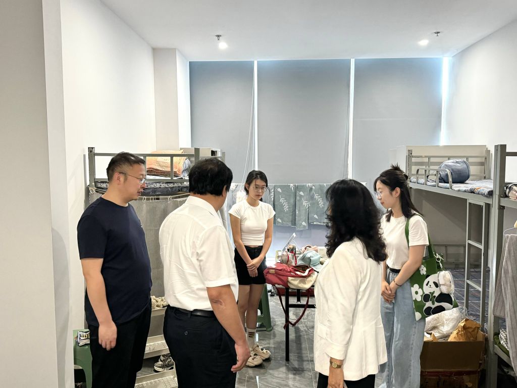 为确保学生在实训实习基地的生活与学习环境得到妥善安排,学院领导、基地项目负责人和辅导员一同走访学生宿舍和教室,细致检查每一处细节,详细记录学生从床铺被褥到学习生活设施配备等方面的需求,解决生活学习问题,确保每位学生都能在安全良好的环境中开展学习和生活。同时,老师们还与学生亲切交流,叮嘱学生在外注意人身财产安全,珍惜实训机会,勇敢追梦。