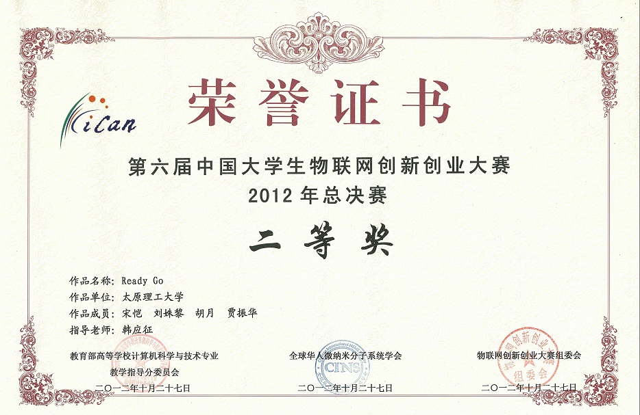 宋恺同学获得第六届中国大学生物联网创新创业大赛二等奖